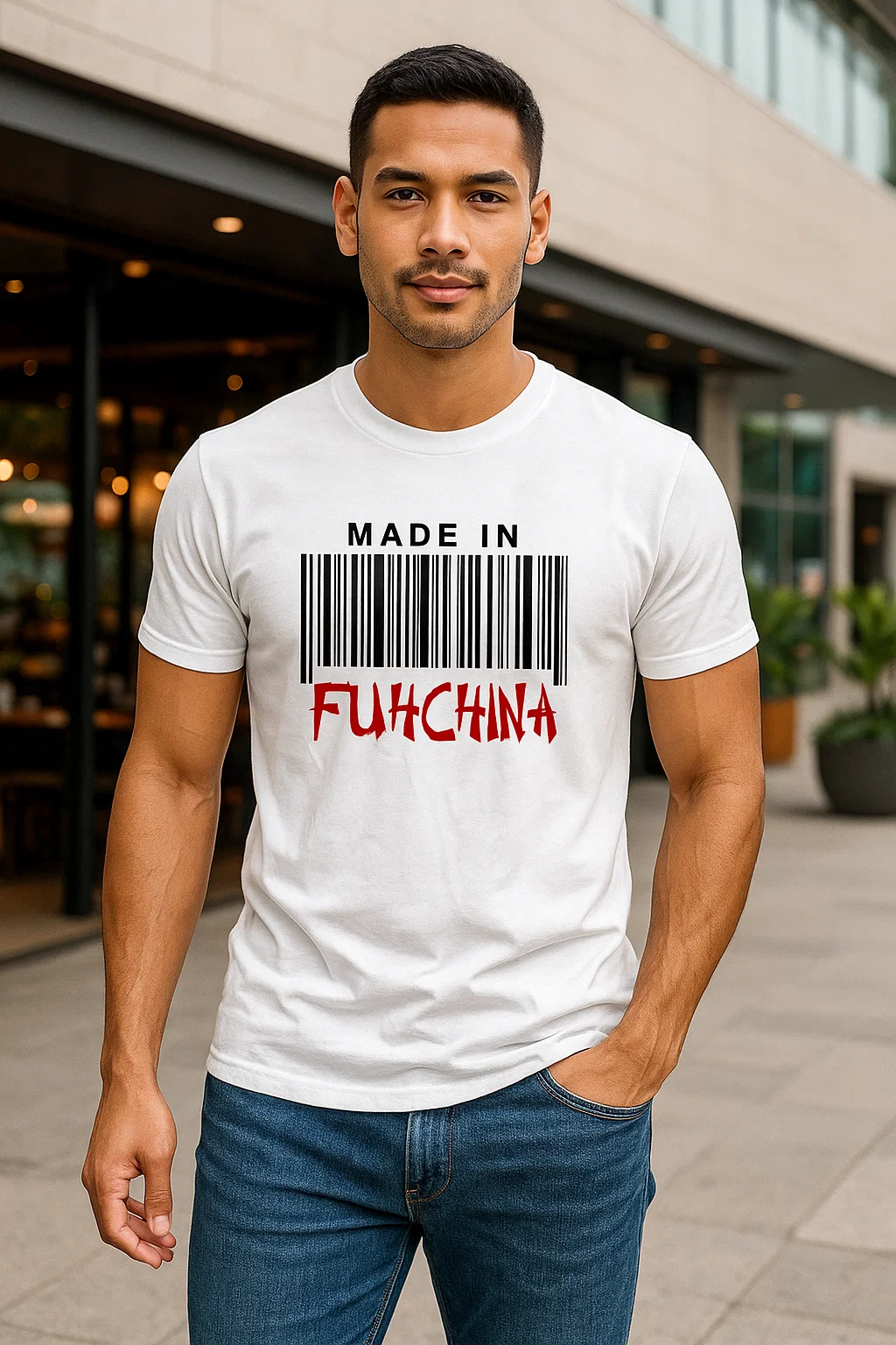 Male , White “Made in Fuh China ” T Shirt